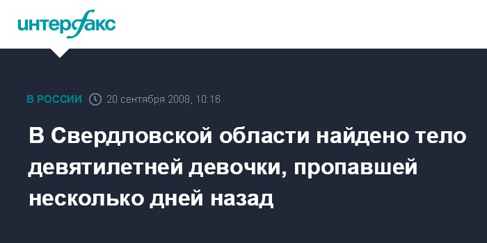 Москва. 20 сентября. INTERFAX.RU - В городе Первоуральске Свердловской области обнаружен труп девятилетней девочки, сообщил источник в правоохранительных органах.
