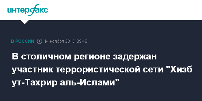 Москва. 14 ноября. INTERFAX.RU - Участник международной террористической организации "Хизб ут-Тахрир аль-Ислами" задержан в столичном регионе, сообщили "Интерфаксу" в пресс-центре МВД России.