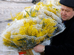 Самый популярный знак внимания женщинам 8 марта – цветы – в этом году также ждет бум продаж. Розы, тюльпаны, фрезии раскупаются с молниеносной скоростью уже сейчас. Также есть большой спрос на мимозы, которые каждый год завозятся из Абхазии. Правда, в этом году поставки этого весеннего цветка сократились в два раза из-за плохих погодных условий, сообщил агентству "Интерфакс-Юг" начальник международного автомобильного пропускного пункта "Адлер" Александр Иосик. Причиной послужило сильное снижение температуры в конце февраля, которое привело к замерзанию мимозы.