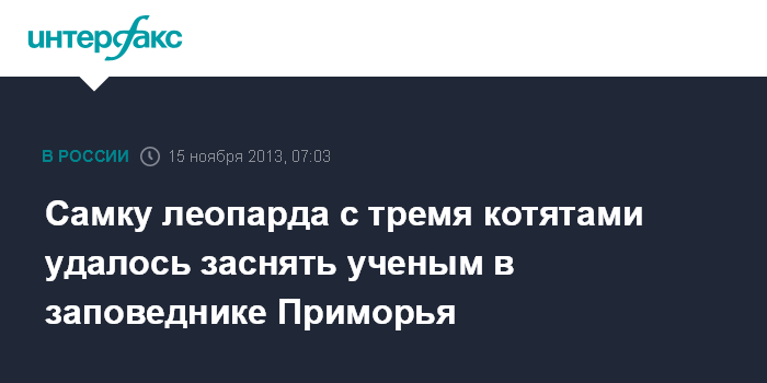 Владивосток. 15 ноября. ИНТЕРФАКС - ДАЛЬНИЙ ВОСТОК - Фотографу и видеокамерам удалось заснять самку редчайшего дальневосточного леопарда с тремя котятами в национальном парке "Земля леопарда" в Приморском крае.