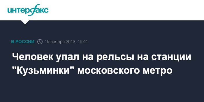 "Для извлечения человека с путей в 09:52 снято напряжение с контактного рельса на станции "Кузьминки" по направлению в сторону центра", - сообщили "Интерфаксу" в пресс-службе метро.