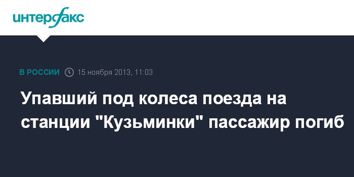 Москва. 15 ноября. INTERFAX.RU - Пассажир, упавший на рельсы на станции "Кузьминки" Таганско-Краснопресненской линии московского метро в пятницу утром, погиб, сообщил "Интерфаксу" источник в правоохранительных органах.