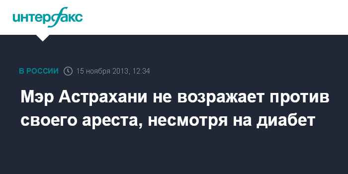 Мэр Астрахани не возражает против своего ареста, несмотря на диабет
