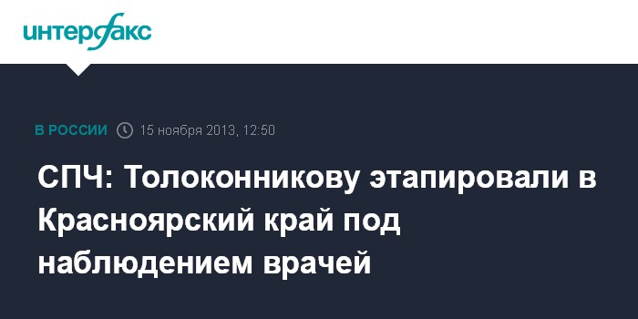 Санкт-Петербург. 15 ноября. INTERFAX.RU - Осужденная участница группы Pussy Riot Надежда Толоконникова находится в колонии Красноярского края, ее этапировали туда под наблюдением врачей, сообщил глава Совета по правам человека при президенте России Михаил Федотов.