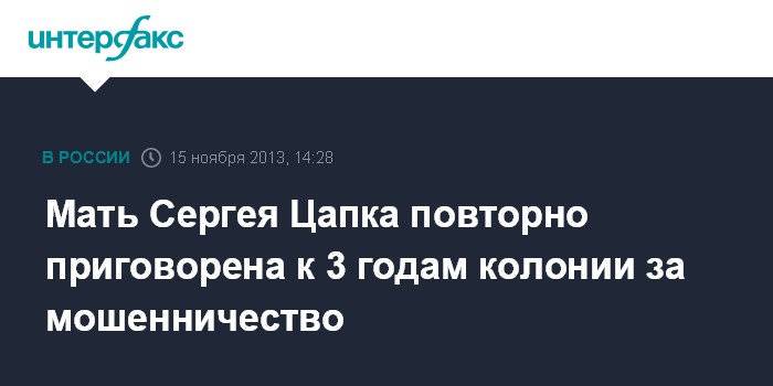 Мать Сергея Цапка повторно приговорена к 3 годам колонии за мошенничество