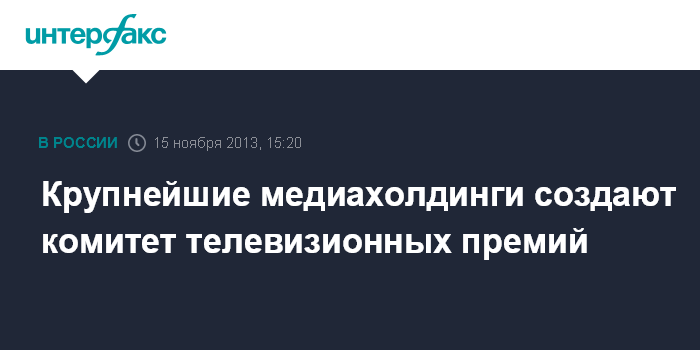 Москва. 15 ноября. INTERFAX.RU - Крупнейшие российские медиахолдинги договорились о создании комитета телевизионных премий.