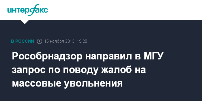 Санкт-Петербург. 15 ноября. INTERFAX.RU - Рособрнадзор ждет разъяснений от руководства Московского государственного университета по поводу ситуации с жалобами сотрудников вуза на массовые увольнения.