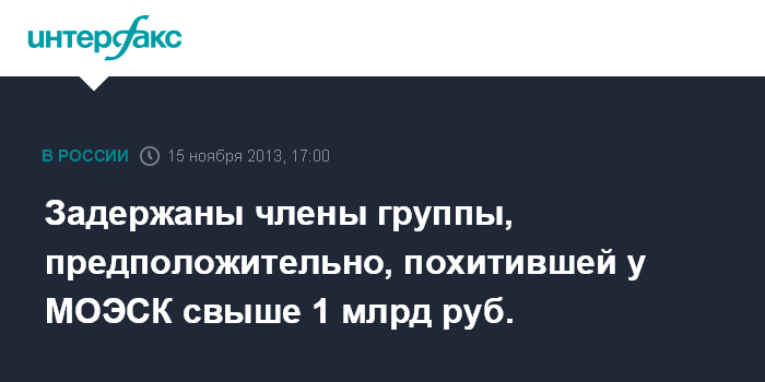 Москва. 15 ноября. INTERFAX.RU - МВД России пресекло деятельность группы, подозреваемой в хищении более миллиарда рублей у ОАО "Московская объединенная электросетевая компания" (МОЭСК).