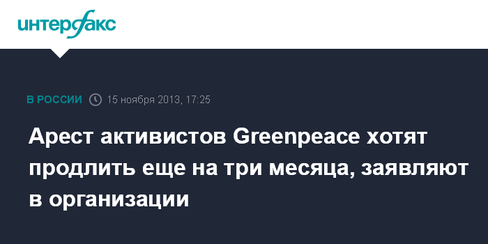 Москва.15 ноября. INTERFAX.RU - В Greenpeace заявили, что следствие просит продлить арест активистов организации, задержанных за акцию протеста против нефтедобычи в Печорском море.