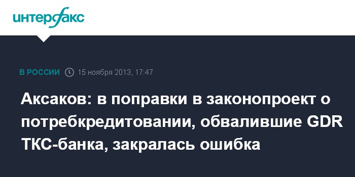 Аксаков: в поправки в законопроект о потребкредитовании, обвалившие GDR ТКС-банка, закралась ошибка