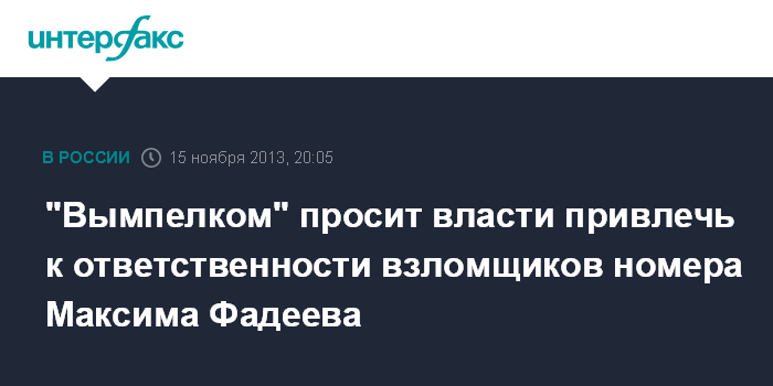 "Вымпелком" просит власти привлечь к ответственности взломщиков номера Максима Фадеева