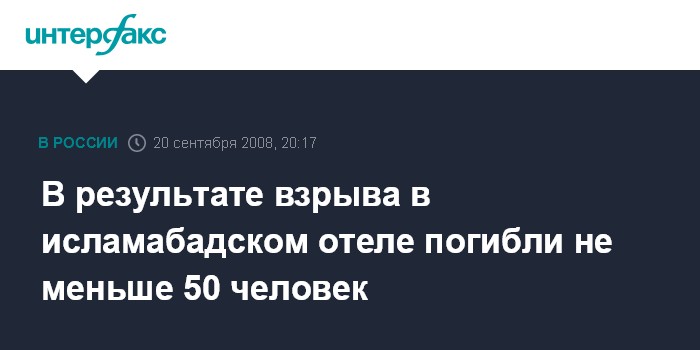Лондон. 20 сентября. ИНТЕРФАКС – По меньшей мере 50 человек погибли в результате мощного взрыва возле отеля Marriott в столице Пакистана Исламабаде в субботу вечером, передает Би-Би-Си.
