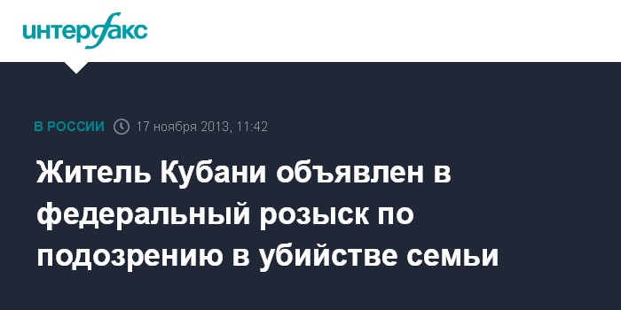 Житель Кубани объявлен в федеральный розыск по подозрению в убийстве семьи