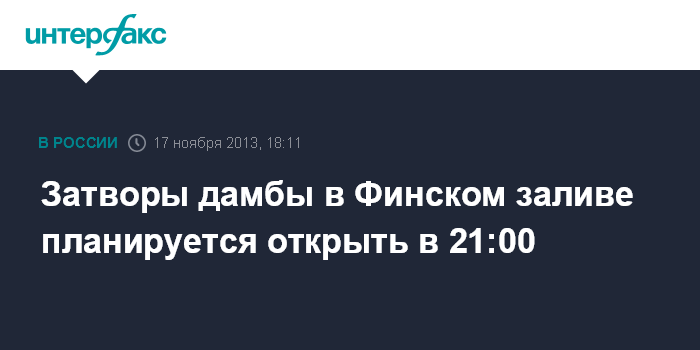 Затворы дамбы в Финском заливе планируется открыть в 21:00