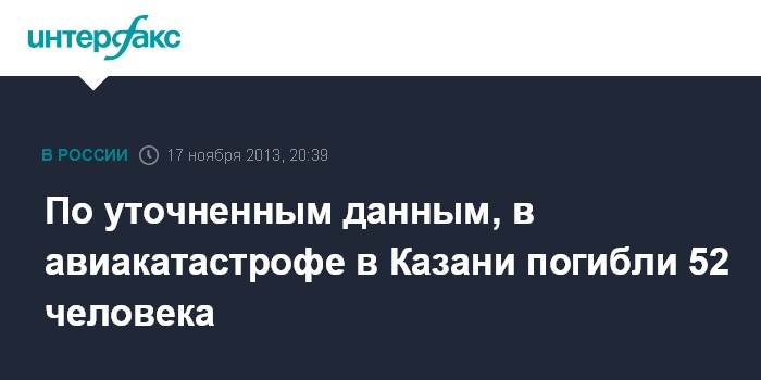 По уточненным данным, в авиакатастрофе в Казани погибли 52 человека