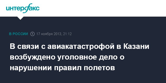 "Следственными органами Приволжского следственного управления на транспорте Следственного комитета Российской Федерации возбуждено уголовное дело по признакам преступления, предусмотренного ч. 3 ст. 263 УК РФ ("Нарушение правил безопасности движения и эксплуатации воздушного транспорта, повлекшие по неосторожности смерть двух или более лиц")", - сообщил "Интерфаксу" официальный представитель ведомства Владимир Маркин.