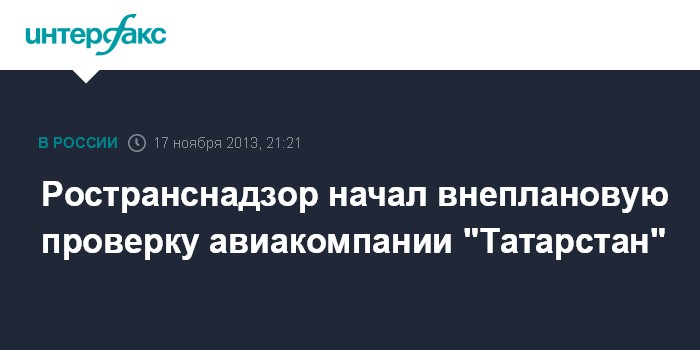 Москва. 17 ноября. INTERFAX.RU - Ространснадзор приступил к проверке авиакомпании "Татарстан", чей самолет разбился в Казани в воскресенье, сообщил "Интерфаксу" официальный представитель ведомства.