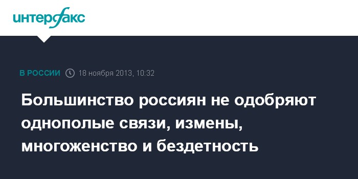 Большинство россиян не одобряют однополые связи, измены, многоженство и бездетность