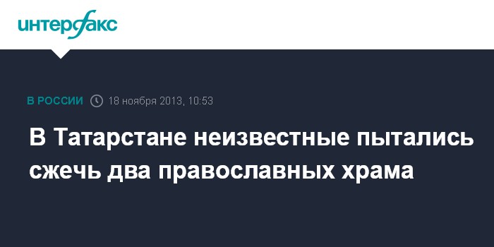 Казань. 18 ноября. INTERFAX.RU - В Татарстане расследуют обстоятельства поджога двух православных храмов, говорится в заявлении Татарстанской митрополии.