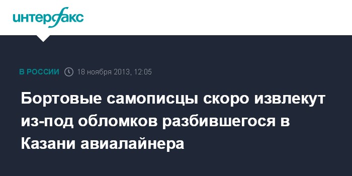 Казань. 18 ноября. INTERFAX.RU - Специалисты экстренных служб, работающие на месте крушения самолета Boeing-737 в Казани, предположительно, установили местонахождение бортовых самописцев, сообщил "Интерфаксу" источник в оперативном штабе по ликвидации последствий ЧС.