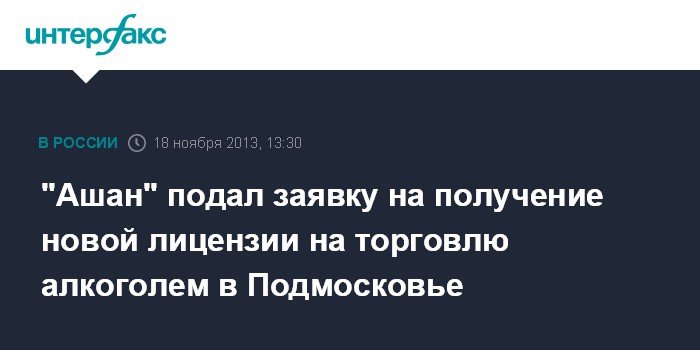 Как сообщалось, в начале ноября министерство потребительского рынка и услуг Московской области приостановило действие лицензий на розничную продажу алкоголя, выданные 11 гипермаркетам "Ашан", работающим на территории региона.