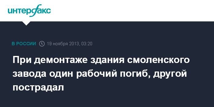 При демонтаже здания смоленского завода один рабочий погиб, другой пострадал