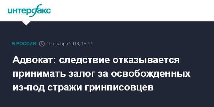 Адвокат: следствие отказывается принимать залог за освобожденных из-под стражи гринписовцев