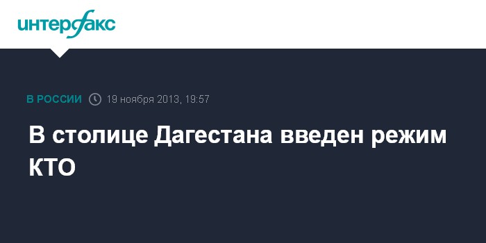 Махачкала. 19 ноября. INTERFAX.RU - Правовой режим КТО введен сегодня в 18:20 в Кировском районе Махачкалы, сообщили "Интерфаксу" в Оперативном штабе в республике Дагестан. "Режим КТО введен в связи с мероприятиями по нейтрализации группы боевиков", - сказал представитель Оперативного штаба.
