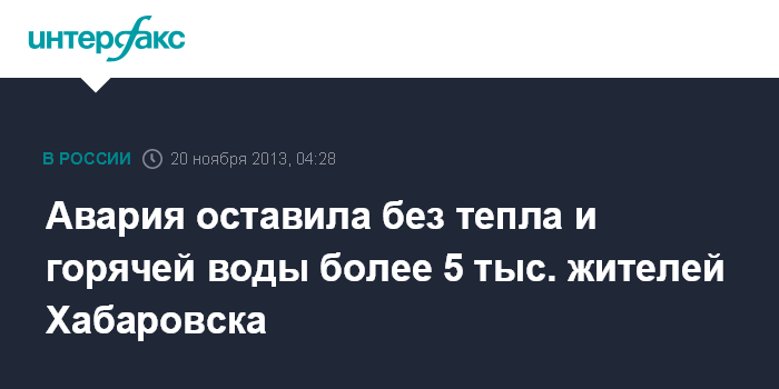 Хабаровск. 20 ноября. ИНТЕРФАКС-ДАЛЬНИЙ ВОСТОК - Более 240 домов и ряд социальных объектов в Хабаровске остались без отопления и горячей воды из-за порыва трубы магистрального водовода.