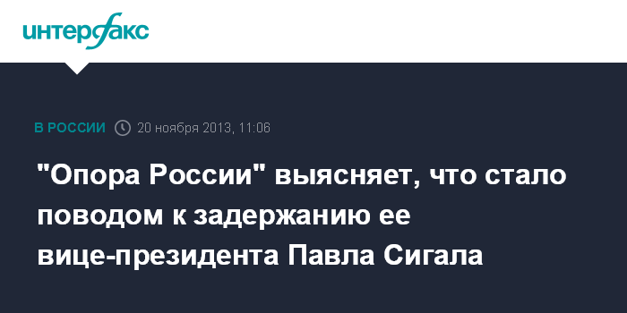 "Опора России" выясняет, что стало поводом к задержанию ее вице-президента Павла Сигала
