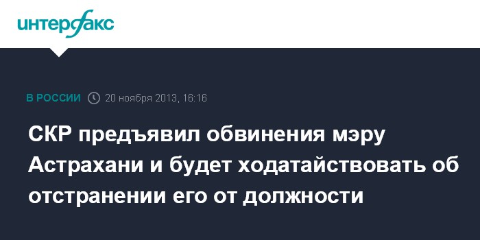СКР предъявил обвинения мэру Астрахани и будет ходатайствовать об отстранении его от должности