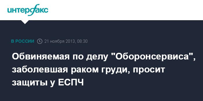 Обвиняемая по делу "Оборонсервиса", заболевшая раком груди, просит защиты у ЕСПЧ