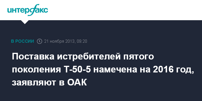 Поставка истребителей пятого поколения Т-50-5 намечена на 2016 год, заявляют в ОАК