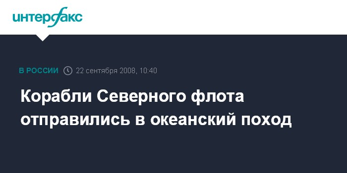 Москва. 22 сентября. INTERFAX.RU - Отряд российских боевых кораблей Северного флота отправился в океанский поход, в рамках которого состоится заход кораблей в порты Венесуэлы и проведены совместные с флотом этой страны учения, сообщил "Интерфаксу-АВН" помощник главкома ВМФ России капитан первого ранга Игорь Дыгало.