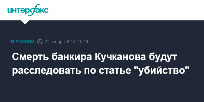 Смерть банкира Кучканова будут расследовать по статье "убийство"