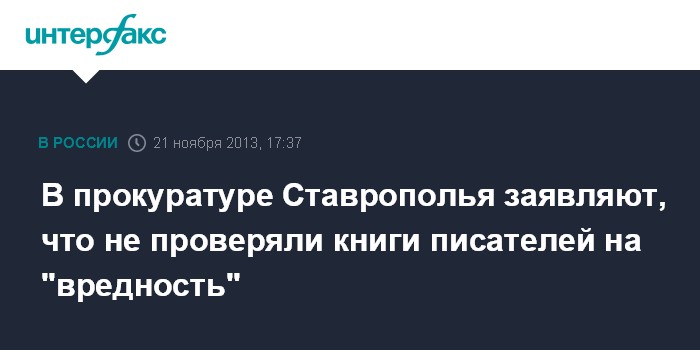 Ставрополь. 21 ноября. INTERFAX.RU - Прокуратура Ставропольского края опровергает сведения о том, что она проверяла произведения Сергея Есенина, Владимира Набокова и других писателей на соответствие образовательному процессу.