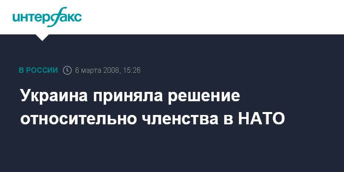 Киев. 6 марта. INTERFAX.RU - Верховная Рада на пленарном заседании в четверг приняла постановление "О решении относительно вступления Украины в организацию Североатлантического договора (НАТО)".