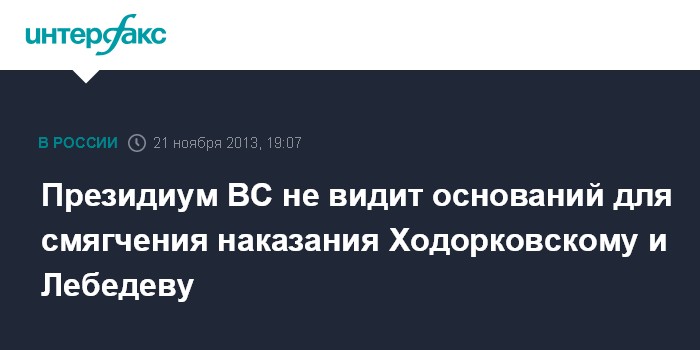 Президиум ВС не видит оснований для смягчения наказания Ходорковскому и Лебедеву