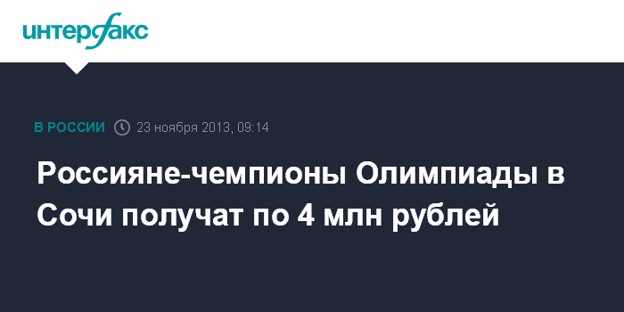 Россияне-чемпионы Олимпиады в Сочи получат по 4 млн рублей