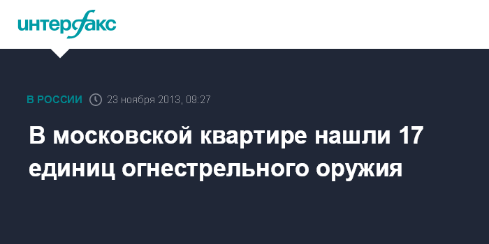 Москва. 23 ноября. INTERFAX.RU - Столичные полицейские изъяли автоматы и пистолеты - в общей сложности 17 стволов - из московской квартиры, в отношении ее владельца возбуждено уголовное дело, сообщили "Интерфаксу" в пресс-службе ГУ МВД России по Москве в субботу.