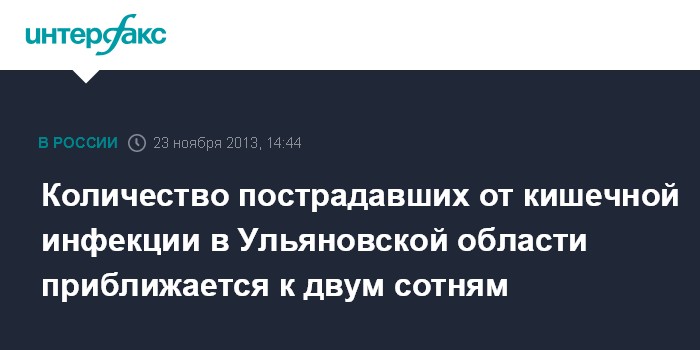 Ульяновск. 23 ноября. INTERFAX.RU - В городе Инза (Ульяновская область) к утру субботы из-за вспышки кишечной инфекции госпитализировано уже 116 человек, большинство из них - дети, сообщили агентству "Интерфакс-Поволжье" в Главном управлении МЧС России по региону.