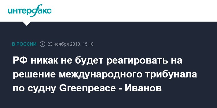 РФ никак не будет реагировать на решение международного трибунала по судну Greenpeace - Иванов