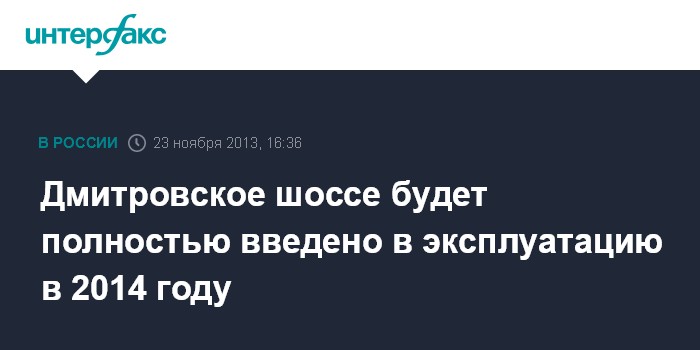 Дмитровское шоссе будет полностью введено в эксплуатацию в 2014 году