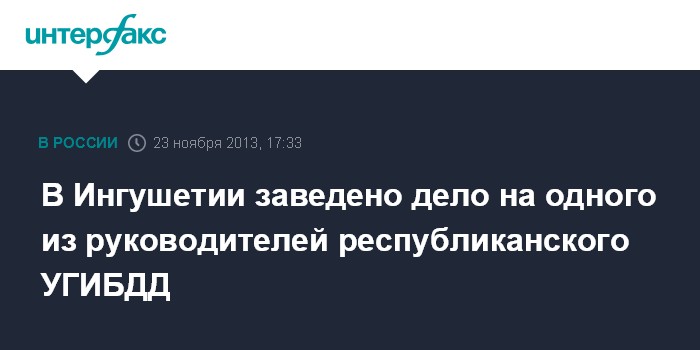 Москва. 23 ноября. INTERFAX.RU - В Ингушетии возбуждено дело в отношении одного из начальников регионального УГИБДД, сообщили в субботу в Следственном комитете России. "Главным следственным управлением Следственного комитета по Северо-Кавказскому федеральному округу возбуждено уголовное дело в отношении одного из руководителей УГИБДД МВД по Республике Ингушетия по признакам преступления, предусмотренного ч. 1 ст. 286 УК РФ (превышение должностных полномочий) и ч. 1 ст. 292 УК РФ (служебный подлог), говорится в сообщении, размещенном на сайте СКР.