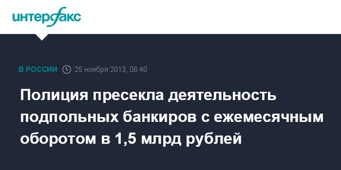 Москва. 25 ноября. INTERFAX.RU - Деятельность подпольных банкиров с ежемесячным оборотом в 1,5 млрд рублей пресечена сотрудниками МВД и ФСБ, сообщили "Интерфаксу" в пресс-службе ГУ МВД России по Центральному федеральному округу.