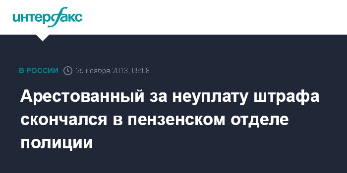 Пенза. 25 ноября. INTERFAX.RU - В отделе полиции Пачелмского района Пензенской области в субботу скончался мужчина, арестованный судом на трое суток за неуплату административного штрафа, сообщает пресс-служба регионального УМВД.