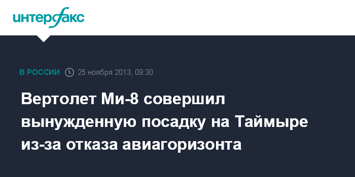 Вертолет Ми-8 совершил вынужденную посадку на Таймыре из-за отказа авиагоризонта