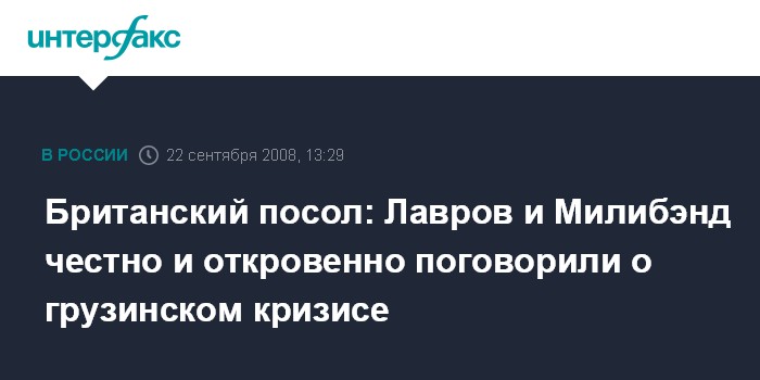 Британский посол: Лавров и Милибэнд честно и откровенно поговорили о грузинском кризисе