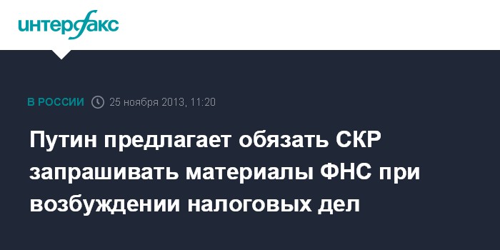 Путин предлагает обязать СКР запрашивать материалы ФНС при возбуждении налоговых дел