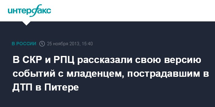 Санкт-Петербург. 25 ноября. INTERFAX.RU - СКР и Петербургская епархия приводят свою версию истории с родителями, которые якобы после ДТП сознательно повезли пострадавшего ребенка не в больницу, а в церковь для крещения.